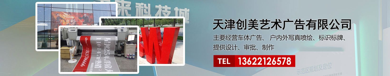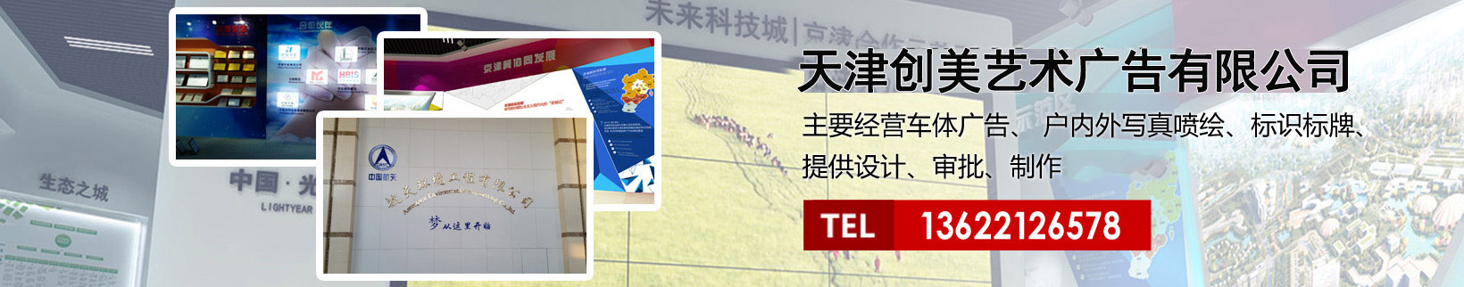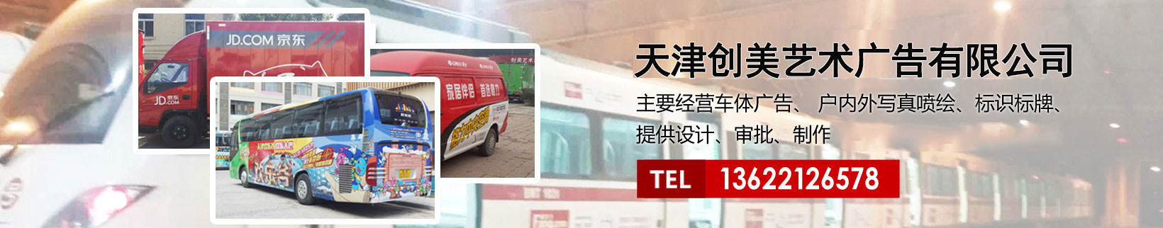 天津創(chuàng)美藝術(shù)廣告有限公司主要經(jīng)營車體廣告、 戶內(nèi)外寫真噴繪、標(biāo)識標(biāo)牌、提供設(shè)計、審批、制作、發(fā)布的服務(wù)。